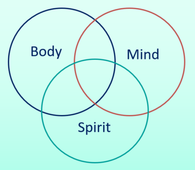 I strongly feel that we need to bear in mind that we are more than just our mind: we are Mind, Body & Spirit. Even these divisions are artificial and it’s not actually possible to draw a line separating one from the other. Also, each element contains aspects of the others within it.